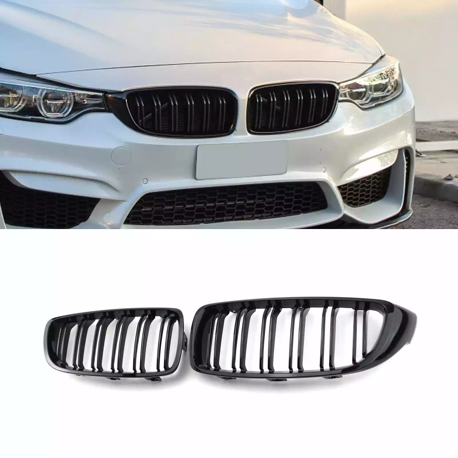 Atjaunojiet sava BMW izskatu ar priekšējā bampera glancētajām dubultajām restēm. Tās piešķirs jūsu automobilim modernāku stilu un sportisku izskatu.